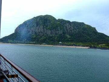早めの昼食。本船もあちこちに仏像が飾っています。 11時頃から済州島が見え始めました