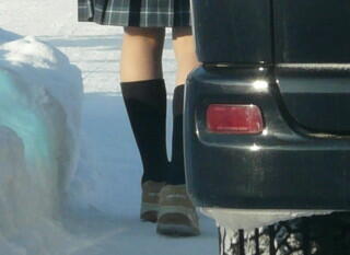 驚くことにこのような気温の中でも女子学生は生足です。寒さより格好良さを考えているのでしょう。いずれ歳を取るに従って膝に来ることは目に見えております。昔はTPOを考えてスラックスを穿いていた生徒がほとんどでしたが・・・・・。本当におバカさんです。 |