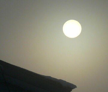 今朝は快晴だが、川霧が立ちこめており、太陽が満月のように見えたので、思わずシャッターを切りました。一寸幻想的な朝でした。