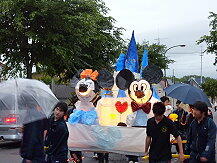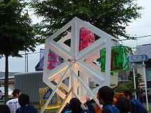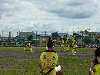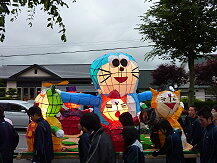 新しい学校は両校の伝統行事があちこちに残っているようで、今日の前夜祭は商業時代の遺産である。行灯も15基も揃うと賑やかでとてもよい。しかし、内容は依然としてワンパターンでもう少し知恵を絞った出し物を期待したいというのが、行列を見た感想である。