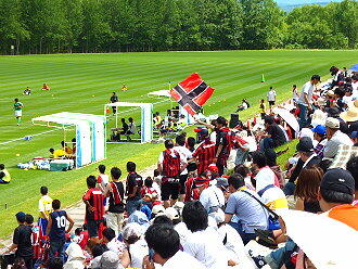 今日ばかりは開店休業状態のサッカー場はファンで一杯であった。遠く札幌からの応援もあったようで、札幌市のナンバーを付けた原チャリもあったのには驚いた。200qの距離を時速30q(多分速度違反)では一体何時間掛かったかな。