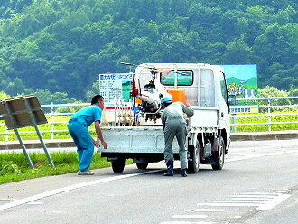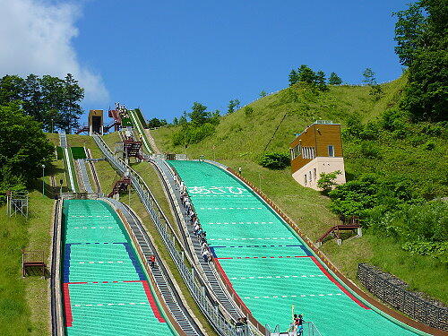 9時から朝日地区でサマージャンプ大会が開催されたので見に行ってきた。雪のないジャンプはどのようなものか、興味津々で車を走らせる。