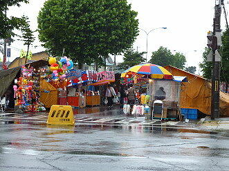 ここ何年かのお祭りを見ると3日間の期間中、必ず一日は雨に見舞われる。お祭りの関係者に雨男がいるに違いない。これで小さい子供や夜店の人達はさぞかしガックリしているに違いない。 ー可哀想ー