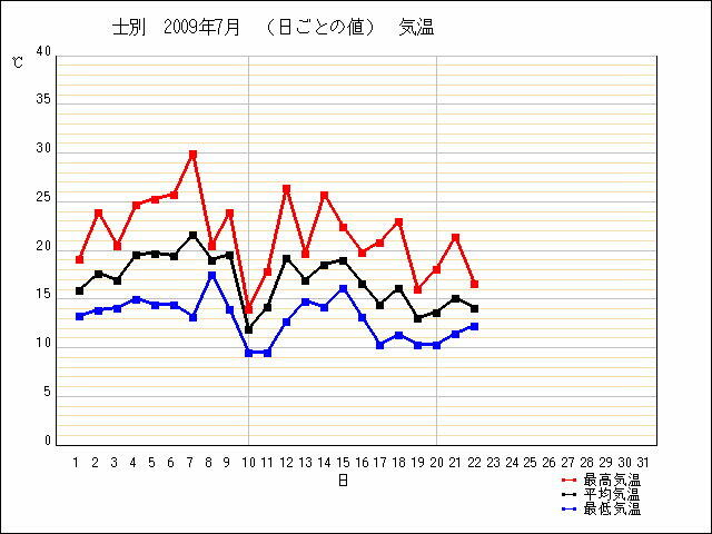 上のグラフを見てほしい。当地の7月の気温の変化を見ると右肩下がりになっています。一体今年の夏はどうなっているか。これから盛夏になろうとしているのに日を追うごとに気温が下がり始めている。もう夏は終わった?まさか。