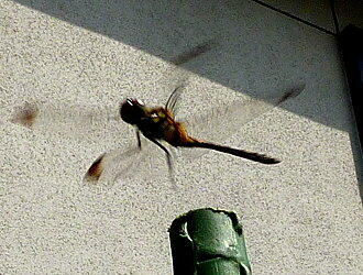 我が家の庭に飛来して羽を休めている元気のよいトンボ |