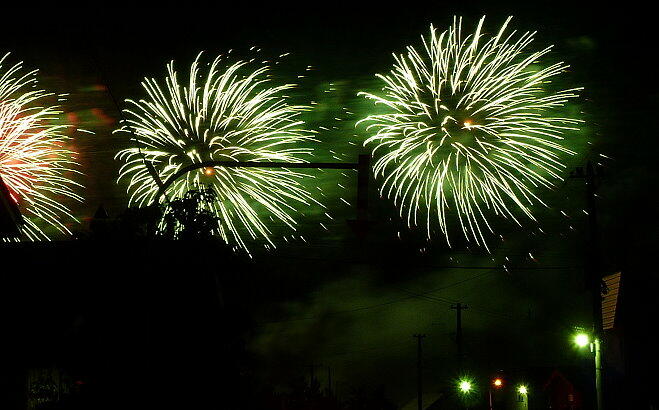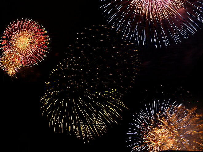 田舎の花火はチョボいので3枚の写真を合成しました。