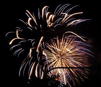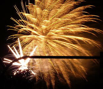 14日7時半から恒例の花火大会が開催された。気温は20度前後で一寸寒い感じがしたが、出足は好調で約1800発の花火を近郊から2千人の見物客が集まったという。今年も我が家横の道路は見物の自動車で一杯である。毎年思うのだがいつかは交通事故が起きるのではないかと心配であったが、今年からパトカーが出動して移動させていた。