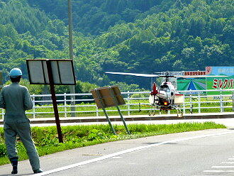 燃料を使い切るため5分あまりホバリング 着陸場所はなんと国道です。まぁ田舎道だか