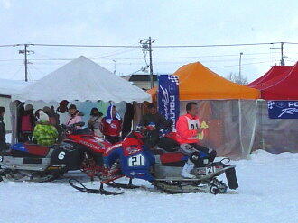 コースは以前から見ると平坦なコースで転倒者はほとんどいない。隣町の和寒のコースは山の側面にあるので、あちらの方が面白い。夏はモトクロス場、冬はスノーモービル場として一年を通じてコースを使用できるようにしたのはよく考えたものだ。