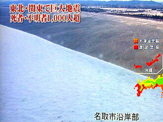 名取市に押し寄せる津波