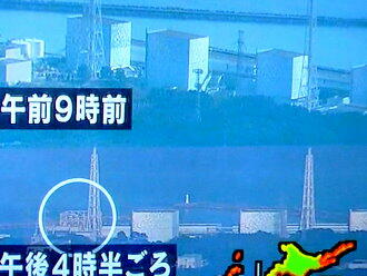 福島第一原発の第1号機で水素ガス爆発が起こり、原子炉建屋が吹き飛んだ。