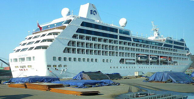 我々が乗船した「オーシャン・プリンセス」 3月19日から4月1日まで人生最後のクルーズとして中国方面へ行ってきました。今回のクルーズは東日本大震災が発生して1週間後の出発でした。本来ならば震災に遭われた人達のことを考えると、とてもクルーズに行くという不見識なことはできないと思いつつ、出発しました。
