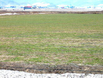 雪の下から顔を出した「秋まき小麦」 公園の池も水面が顔を出し始めました |