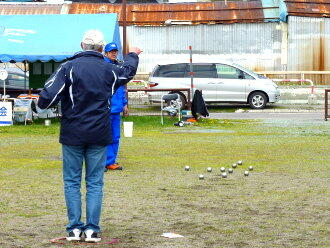 内容は市内の小学生が太鼓とか踊りを市民に見せるらしい。それに便乗して屋台が立ち並んでいるという、不思議な光景である。一度、この会の目的をきちんと聞きたいものだと思いつつ、次の「市民ペタンク大会」へ自転車を走らせる。この大会も回を重ねて17回目という。メジャーな競技ではないのに随分と続くものだと感心した。