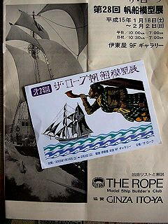 銀座「伊東屋」ではTHE ROPE主催の「第28回帆船模型展」が1月18日〜2月2日まで開催されているをWEBで見つけた。