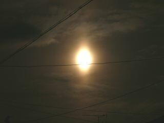 昨日の月齢15で丁度、満月であった。その月を見ると光柱が上下に立っているのを発見した。