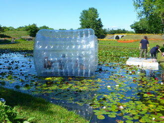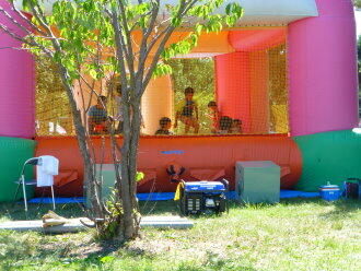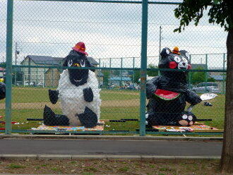 士別産業祭りは早々に後片付けに入っています。乳搾りモー君も寂しそうです。 |