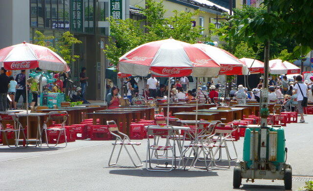 今年の市内各地で実施された行事はことごとく雨に祟られた最悪の年でした。士別神社祭の本祭りで神輿行列が大雨に遭ったり、天塩川祭りが中止、盆踊りは2日間延期、そして25日の「得の市」と「士別産業祭り」など軒並み雨に祟られました。