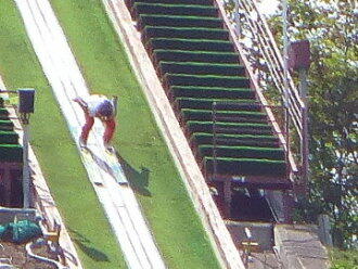 朝日町のジャンプ台は60m級のシャンツェで、やや小ぶりだが、小学生から一般までの選手が汗を流しながら元気よく飛んでいた。またこの大会は午前中にローラースキーの大会もあり、最近は季節感のないスポーツが流行っているようだ。あまりにも暑いので2本目のみ観戦して帰ってきた。今日もジュニア&レディス大会が行われている。