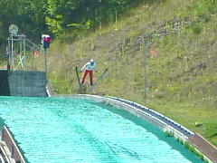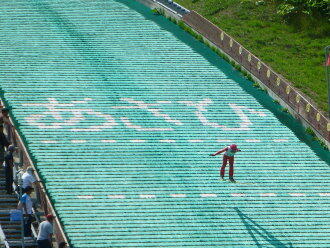昨日真夏のジャンプ大会を観戦するため朝日町へ出かけてきました。このジャンプ台では7月14日にも大会がありましたが、日本の一流どころの選手が出場するため、相当な混雑が予想されたのでパスして、昨日の大会を見物することにしました。