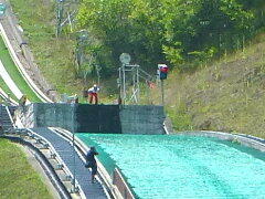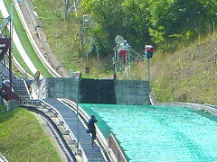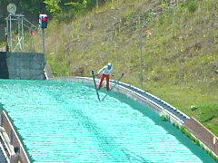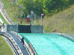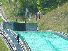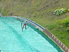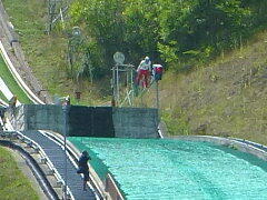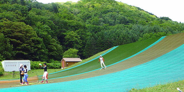 夏場のジャンプ大会は選手も役員も汗だくの大会であるが、シャンツェに散水することで少しは涼しいのかも知れないが、おそらく屁の突っ張りにもならないことでしょう。