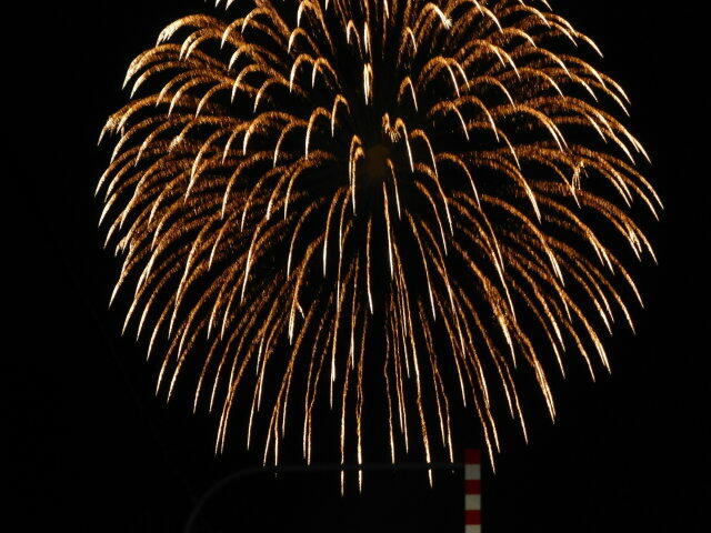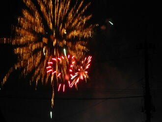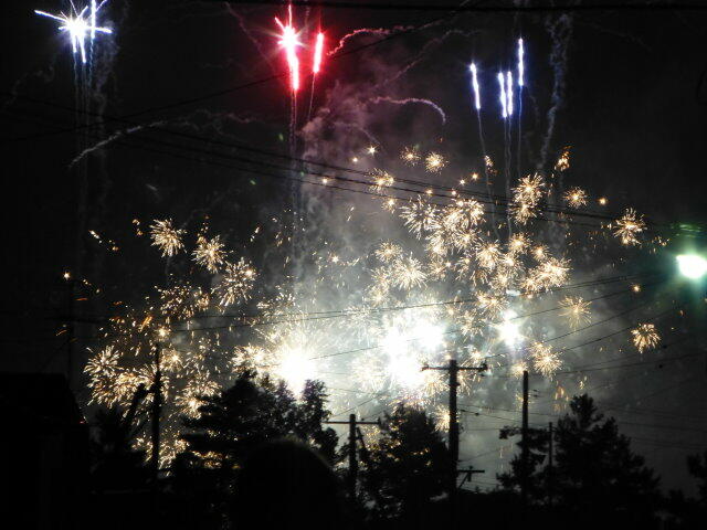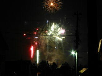 今年の花火はとくに変わった花火はなかったが、例年と比較すると7時半から始まって45分間のあっという間の花火大会であった。また観客も我が家を通る人も何かしら少なく感じた。自動車も交通整理するほどの混雑さがなく、ちょっと寂しい感じの花火大会でした。