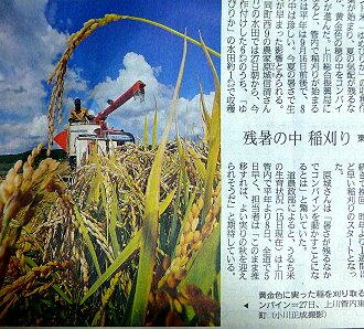 今朝付けの「道新」によると上川管内の東川町の水田で道産ブランド米「ゆめぴりか」の収穫作業が27日から始まったという。