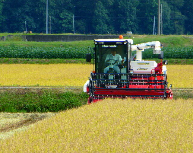 このコンバインは麦刈りと同じタイプで中型タイプ?