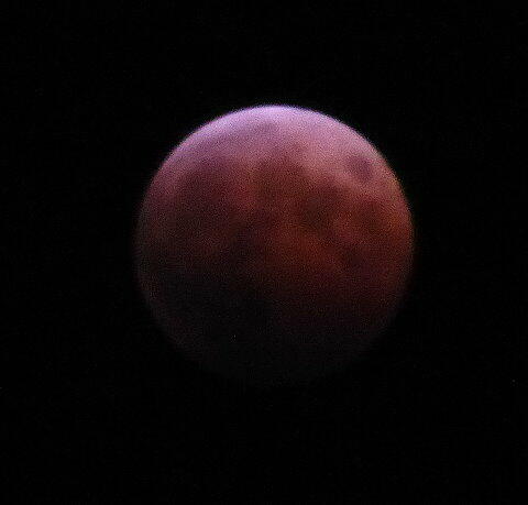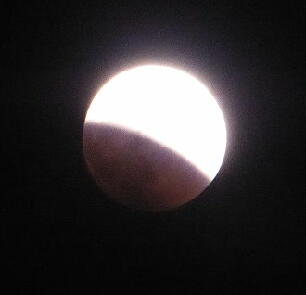19時34分 皆既月食に入りました 赤い月を見ると不気味な感じがします。 |
