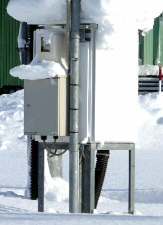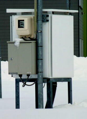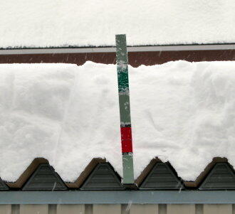 車庫に付けたスケールでは40p 電柱もすっかり雪化粧