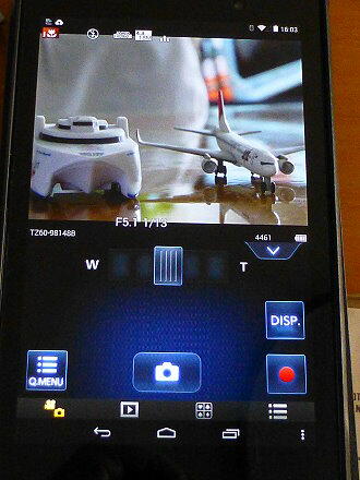 接続したときのタブレットの画面 カメラの操作はほとんどタブレットで可能です