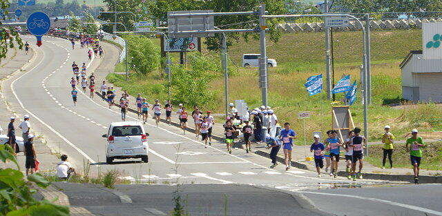 沿道にはたくさんの応援する人達で一杯。真夏日に近い暑さの中を力走する選手たちに声援をおくっていた。この暑さのため救急車のサイレンが絶え間なく聞こえ相当数のの選手が暑さにやられたようだ。せめて夏日以下の環境下で走らせてやりたいものです。