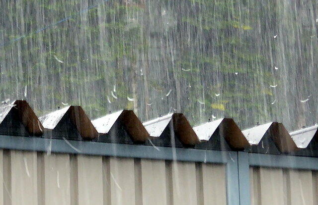 今日14時過ぎ、にわかに空が暗くなり、突然真っ白い物が音を立てて空から降ってきました。直径1センチもあろうかと思うヒョウが雷鳴とともに降ってきました。