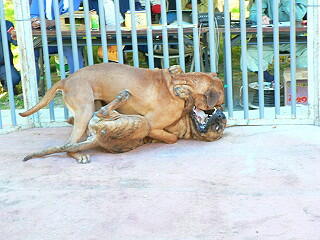 今日はすがすがしい一日であった。温度が23度位がとても気持ちがよい。早速、自転車に乗って公園を一回りしていたら土佐犬の闘犬が行われていた。