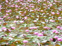 近くの公園の池に今年も一杯の蓮の花が咲いた。どのような種類か不明であるが、赤色と白色の花が咲き誇っている。毎年見ているが毎年少しずつ増えている感じで、後2,3年後には池一面に咲いて、それは見事な風景が見られるかも知れない。今から楽しみである。
