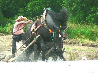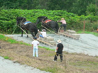 1トン近い馬そりを引く姿は勇壮そのものであるが、さすがポニーの輓馬となれば何か虐待しているような感じがする。それでも軽々と橇を引いているのには驚きであった。