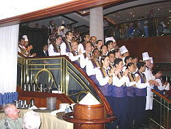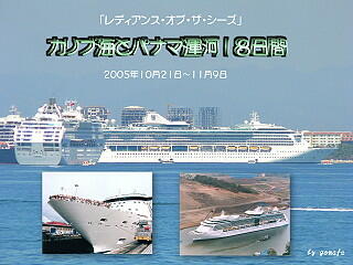 本船は「レディアンス・オブ・ザ・シーズ」というパナマックス船。パナマ運河を通過できる最大のクルーズ船である。 諸元 船籍 ナッソー、バハマ トン数 9万トン 全長×幅×喫水 293.2×32.2×8.5b 速力24ノット エンジン ガスタービン2基 蒸気タービン1基 3基のポッド式電気推進 夕方5時から船長主催の「ウエルカム・カクテル・パーティー」がフォーマルの服装で始まり、引き続きフォーマルディナーとなりました。