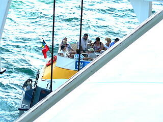 後から来たクルーズ船 クリストバルのシッピング・エリアでの歓迎 |