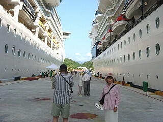 しかし、どこの港へ入っても必ずクルーズ船に出くわす。このコースはクルーズ船の銀座通りと言ったところか。 |