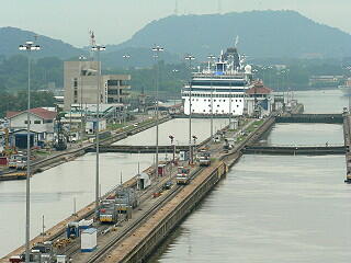 閘門に入ると相当な勢いで水が満たされ船が持ち上がる。意外と早く水を出し入れするようだ。途中でオプションに出かける人達を降ろしてクリストバルに入港し、シッピング・センターを散策する。もし運河を境に南北アメリカに分かれるとすれば南アメリカにタッチしたことになる。