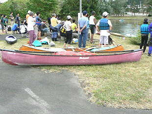 「しべつ水の郷フェスタ」の一環として水郷公園の池で「ウォーターストライダー選手権」大会が開催されていた。あらかじめNHKで放映されていたためか結構な参加者(46名)と観客が集まった。