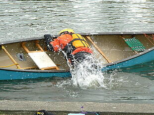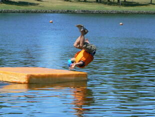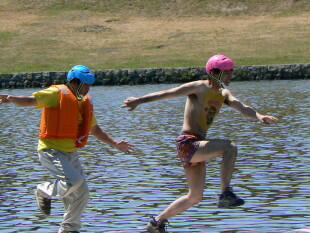 最後は全員で次々と池へドボーン