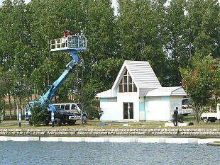昨日公園を散歩していたら池になにやら発泡スチロールを並べて、ロープで結んでいるのを発見した。作業している人に聞いたら29日10時から「しべつ水の郷(みずのさと)フェスタ」という催し物の一つとして約30メートルあまりの発泡スチロールの橋をいかに早く渡りきれるかを競うもので、優勝賞金は5万円だという。