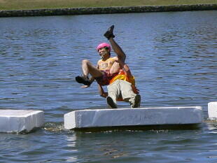 折角、ビニールの上に水を撒いても、安全上から靴を履かなければならないので、半分以上の参加者は成功したようだ。やはり滑りやすい裸足で競技をすべきであろう。しかし、タイムが悪くてもパフォーマンス賞狙いもあるので、それなりに面白かった。