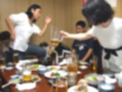 夕方から食事と宴会に入り、昔話に花を咲かせる。この年代になると一見元気そうに見えても毎日なんだかの薬は飲んでいるらしい。やはり寄る年波には勝てないらしい。酔う程に次第に声も大きくなり、普段女性のようにあまりしゃべらない男共が一気に堰を切ったようにしやべり出し、翌日は皆さん声を涸らしていたようでした。