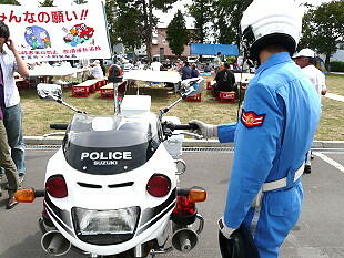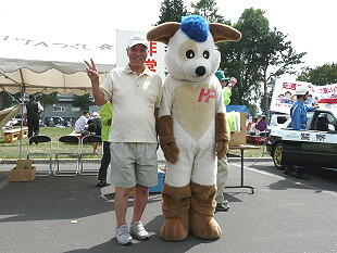 道警のパトカーと白バイが展示されていました 道警のマスコット共に