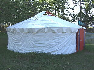 電話を掛けて確認したら夏休みのちびっ子達の研修に使用したとのことで、近々撤去する予定であるという。またこのゲルは本物ではなくレプリカであるという。そういえばゲルを覆っているのはテント地で本物とは違うようだった。しかし、骨組みは釘を一切使用せずにすべて紐で固定してるのは見事であった。来年も中を整備して市民に開放してみては如何と思う。