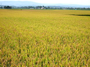 収穫の秋 早いところではすでに稲刈りが始まったようです。稲も改良されて北海道では4ヶ月余りで収穫できるようになった。昔は10月半ばまで稲刈りを待たなければならなかったことを思うと夢のような話である。