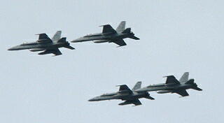 当日は会場へ行かなかったので自宅から撮したという F18の編隊
