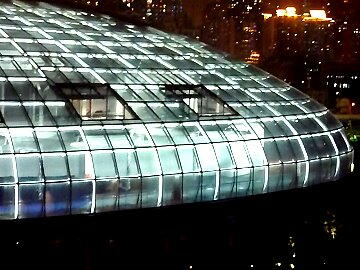 が、これはターミナルの形が水滴のように設計されているためという。その総ガラス張りの建築物は、対岸の浦東か